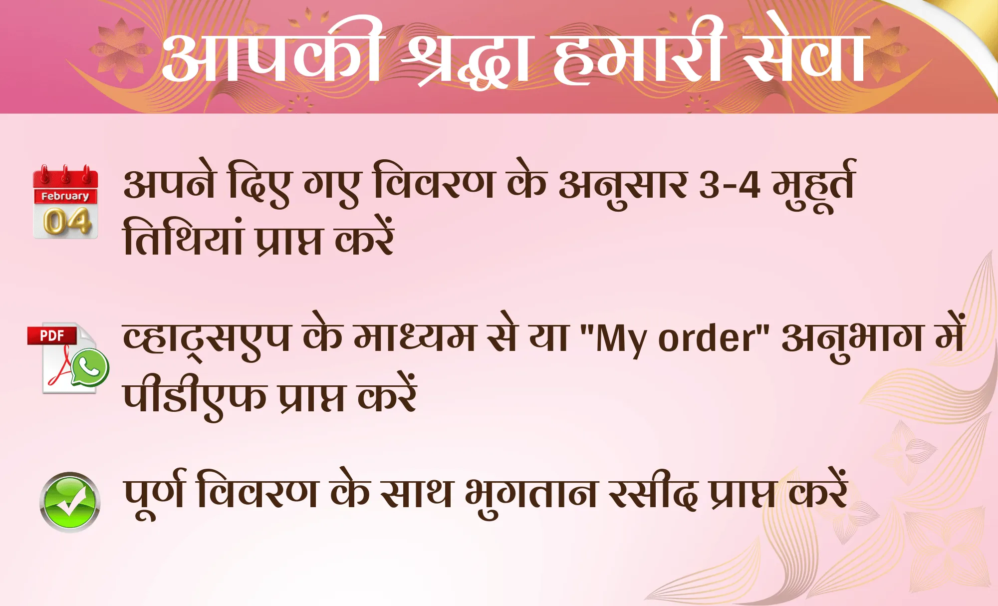 जानकारी के रूप में आपको शुभ दिनांक, तिथि, वार, नक्षत्र, और समय उपलब्ध कराया जाएगा।